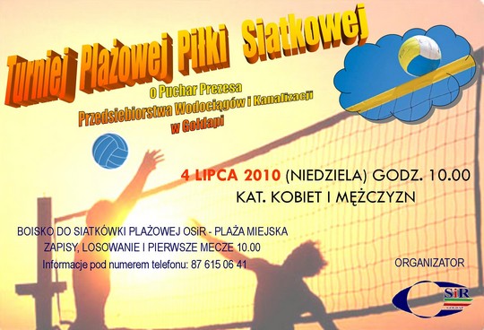 Ośrodek Sportu i Rekreacji zaprasza na turniej plażowej piłki siatkowej o puchar prezesa Przedsiębiorstwa Wodociągów i Kanalizacji w Gołdapi. Odbędzie się on 4 lipca na plaży miejskiej. Początek o godzinie 10.00.