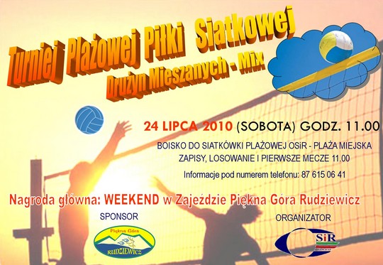 Ośrodek Sportu i Rekreacji w Gołdapi zaprasza na kolejny w tym roku turniej plażowej piłki siatkowej. Odbędzie się on w najbliższą sobotę na plaży miejskiej nad Jeziorem Gołdap. Początek o godzinie 11.00. Na zwycięzców czeka bardzo atrakcyjna nagroda.