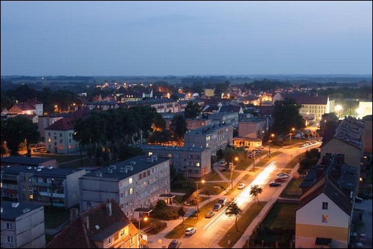 Gołdap wieczorową porą, widziana z Wieży Ciśnień.