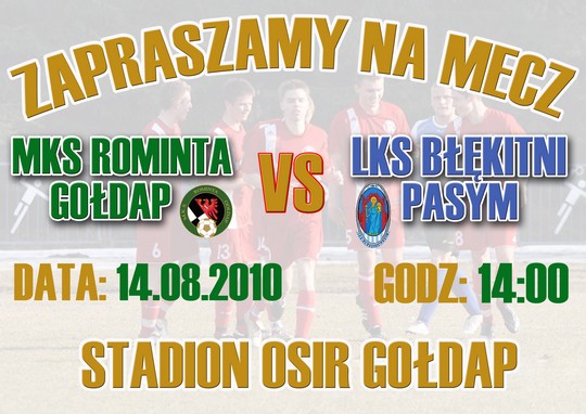 W związku z pojawiającymi się wątpliwościami wśród gołdapskich kibiców, co do terminu najbliższego spotkania Rominty Gołdap z Błękitnymi Pasym, informujemy, że mecz ten odbędzie się w jutro na stadionie miejskim w Gołdapi. Początek o godzinie 14.00. Serdecznie zapraszamy do przybycia i dopingowania zawodników.