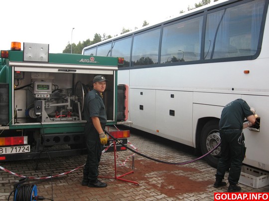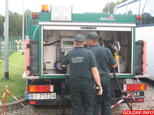 O ile kontrole zawartości zbiorników nie są już na granicy nowością, o tyle sprzęt, który wypożyczyli gołdapskim celnikom podlascy celnicy, taką nowością jest na pewno. To agregat pompowo-pomiarowy czyli cysterna przystosowana do wypompowywania i mierzenia ilości oleju napędowego w samochodowych zbiornikach. Na przejściu w Gołdapi jest od niedawna (od 18 sierpnia), a już udało się osiągnąć pierwszy sukces.