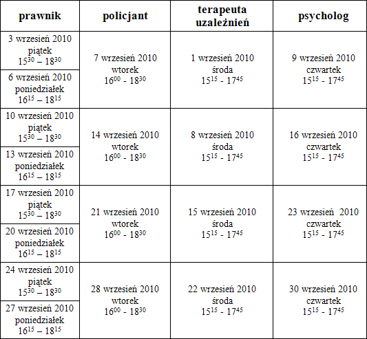 Ośrodek Pomocy Społecznej w Gołdapi przypomina, że w tutejszym ośrodku działa Biuro Porad Prawnych. Swoją pomocą służą prawnik, policjant, terapeuta uzależnień i psycholog. Przestawiamy Państwu harmonogram pracy BPP we wrześniu br.