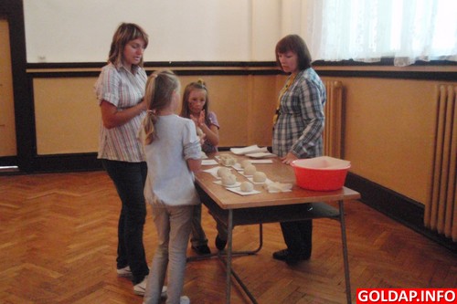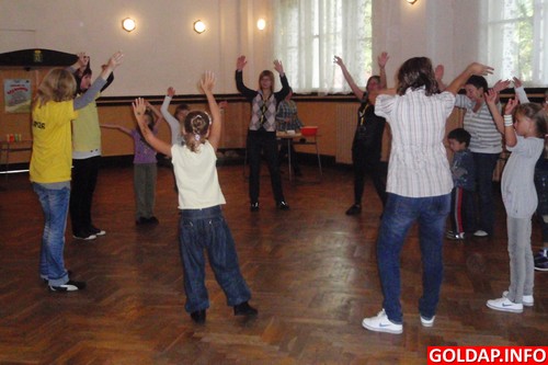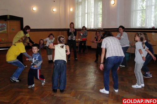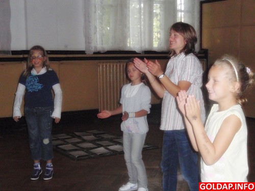 Klanza (w skrócie) to Polskie Stowarzyszenie Pedagogów i Animatorów „Klanza". Dzisiejsze zajęcia poprowadziła grupa trenerek „Klanzy" z Gołdapi, która podlega pod oddział w Białymstoku. W godzinach od 15 do 17 uczyły one przybyłe dzieci tańców oraz zabawy z chustą animacyjną. Większość maluchów zgodziła się na pomalowanie sobie twarzy kolorowymi, wesołymi farbkami. Dzieci bawiły się także zmysłami oraz przygotowały własne figurki z masy solnej, poznawały również zasady powstawania kolorów.