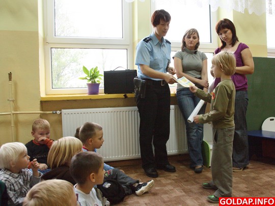 Dziś takie rozmowy dzieci z policjantem odbyły się w Szkole Podstawowej nr 3 w Gołdapi. Mł. asp. Marta Andruczyk, specjalistka d/s nieletnich w KPP w Gołdapi, spotkała się zarówno z najmłodszymi klasami, jak i tymi starszymi. Okazuje się, że już maluchy z klas pięciolatków i sześciolatków doskonale wiedzą, jak powinna wyglądać bezpieczna droga do i ze szkoły. Są świadomi, że powinni przechodzić przez jezdnię tylko po pasach, że po mieście mogą chodzić tylko od opieką kogoś starszego, a także, że jadąc samochodem powinny siedzieć w foteliku lub na specjalnym siedzisku. Gorzej wygląda jednak stan faktyczny. Niektóre dzieci wprost mówiły policjantce, że ich rodzice czy bliscy wożąc je do szkoły nie używają fotelików, że przez jezdnię nie zawsze przechodzą po pasach. Tak stwierdziło m.in. dziecko jednego z nauczycieli. Matra Andruczyk słysząc te słowa poprosiła wychowawców klas, aby na najbliższym zebraniu rodziców została poruszona tematyka związana z bezpieczeństwem dzieci w drodze do i ze szkoły, a także poza nią.