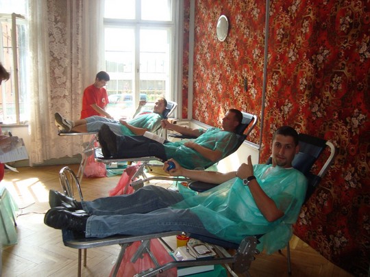 Akcje społeczne mające na celu honorową zbiórkę krwi od osób zdrowych na rzecz osób wymagających transfuzji krwi lub do produkcji preparatów krwiopochodnych. Do chwili obecnej przeprowadzono 10 zbiórek krwi i dwie wycieczki: