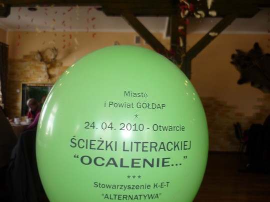 24 kwiecień 2010 - „O godzinie 11:00 na ulicy Wczasowej, tuż przed wejściem do Sanatorium "Wital", zebrali się wszyscy zainteresowani. Głos zabrała Ewa Jurkiewicz, prezes młodego jeszcze Stowarzyszenia Kulturalno-Ekologiczno-Turystycznego "Alternatywy", witając gości na otwarciu pierwszej w Gołdapi ścieżki literackiej. Właśnie na ulicy Wczasowej odsłonięto pierwszą z czterech tablic, symbolizujących miejsca spotkań poetów. Na spotkanie przybyli Wojewoda Marian Podziewski, starosta Jarosław Podziewski, zastępca burmistrza Jacek Morzy oraz osoby, których bezpośrednio ścieżka literacka dotyczy, czyli poeci, spotykający się niegdyś w naszym mieście i wspólnie tworzący swoje dzieła. Obecnością zaszczycili Marek Borawski, Wacław Klejmont, Jan Jastrzębski, Wojciech Darski, Ryszard Dutkiewicz oraz Janusz Sowiński. Podczas przecięcia mieczami wstęgi na pierwszej tablicy całości przyglądali się pozostali zaproszeni goście, których nie sposób wymienić z racji dużego zainteresowania imprezą" - takie relacje znajdujemy do dziś na Młodej Gołdapi. Jeszcze nie tak dawno (1979 - 2002) w Gołdapi spotykali się poeci w ramach Jesiennych Dni Literatury, bo nasze miasto jest poezjotwórcze, a gdyby szukać korzeni, trzeba wspomnieć grupę „Dom Marka". Pierwszą inicjatywą, po reaktywacji Stowarzyszenia K-E-T Alternatywa, było podjęcie starań o ocalenie od zapomnienia cząstki gołdapskiej kultury. 4 miejsca spotkań twórców upamiętniają dziś 4 księgi z cytatami poetów. Oprócz pamiątkowej kroniki wydarzenie dokumentuje film zrobiony przez młodzież. Młodzi prezentowali go na zamku królewskim w Warszawie (ogólnopolski przegląd projektów).