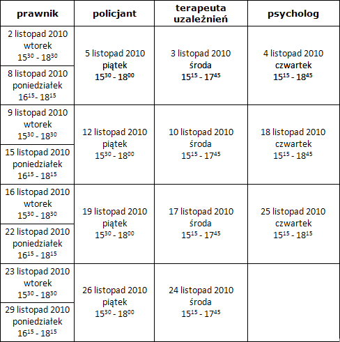 Ośrodek Pomocy Społecznej w Gołdapi przypomina, że w tutejszym ośrodku działa Biuro Porad Prawnych. Swoją pomocą służą prawnik, policjant, terapeuta uzależnień i psycholog. Przestawiamy Państwu harmonogram pracy BPP w listopadzie br.