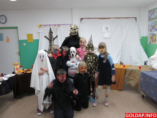 W noc Halloween należy obowiązkowo przebrać się za "straszydło". Uczniowie wspaniale wywiązali się z tego zadania, bowiem na korytarzach szkoły przemykały wiedźmy, duchy, diabły i inne upiory. Kto nie był przebrany, tego twarz mogła zostać wymalowana. W konkursie na najstraszniejszy taniec nagrodą były świeże „palce", wykonane przez uczniów. Podczas całej imprezy na stolikach mieliśmy słodki poczęstunek, przygotowany przez mamy uczniów z klasy II: panią Małgorzatę Żylińską oraz panią Joannę Jankowską.