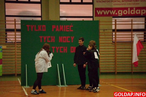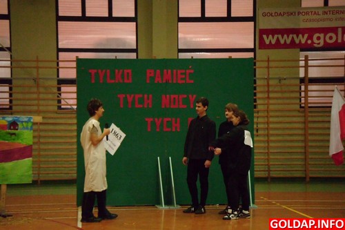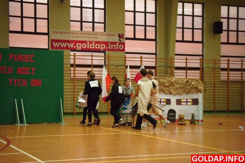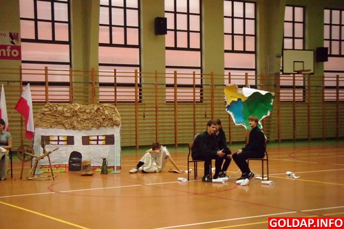 O godzinie 12.00 w Kompleksie Sportowo Rekreacyjnym uczniowie z klas 3J oraz 2A, pod kierunkiem Wioletty Werner-Wysockiej, Marty Górskiej oraz Stanisławy Mosakowskiej, przedstawili uczniom swojej szkoły krótką historię Polski, obejmująca okres przed i po odzyskaniu niepodległości w 1918 roku. Młodzież zaprezentowała m.in. co się działo w Polsce przez rozbiory dokonane przez Austrię, Prusy i Rosję.