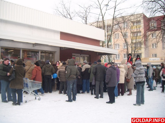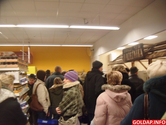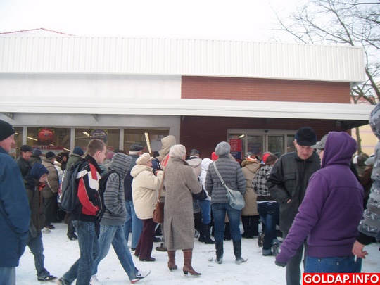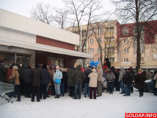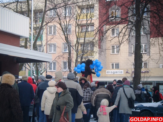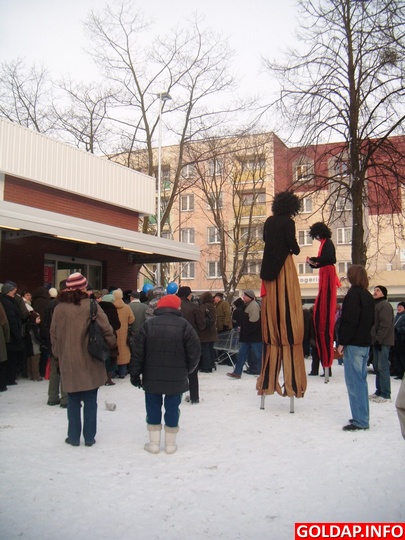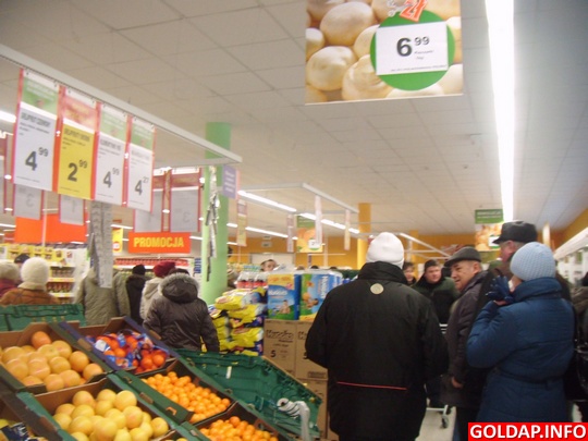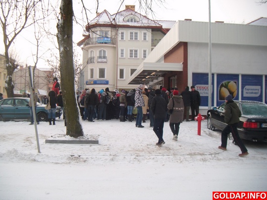 Przed sklepem widać tłumy ludzi. Co chwilę dochodzą nowe osoby, zaciekawieni  czekają na otwarcie sklepu Tesco. Dwóch mężczyzn na szczudłach rozdaje balony i ulotki, niektórzy robią sobie z nimi zdjęcia. Wybija godzina 9.00. Drzwi do sklepu się otwierają. Tłum ludzi próbuje się dostać do środka jak najszybciej, nikt nie patrzy na innych, wszyscy pchają się jeden przez drugiego, jak na amerykańskich wyprzedażach. Na szczęście obyło się bez wypadków. Ci co mogą, biorą wózki i koszyki, lecz po krótkiej chwili już ich brak. Klienci przeglądają półki sklepowe, przymierzają się do kupna niektórych produktów. Spiker przez mikrofon ogłasza, że po 12.00 dzieci dostaną darmowe waty cukrowe... Sklep Tesco w Gołdapi jest już otwarty.