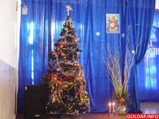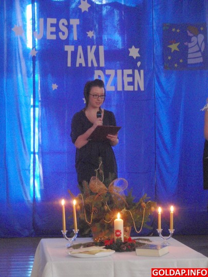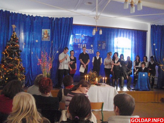 Na wigilii szkolnej, która odbyła się w środę na sali rekreacyjnej Zespołu Szkół Zawodowych w Gołdapi, panowała sympatyczna, świąteczna atmosfera. Na początek przemówiła dyrektor Mirosława Równa, która życzyła wszystkim wesołych świąt spędzonych w rodzinnym gronie. Później zabrała głos wicestrarosta Ewa Bogdanowicz-Kordjak. Przeczytała list od nowego starosty Andrzeja Ciołka, który nie mógł być obecny na tej uroczystości. Powiedziała też kilka słów od siebie, m. in. że jest dumna z uczniów tej szkoły.