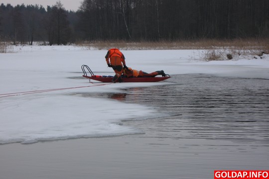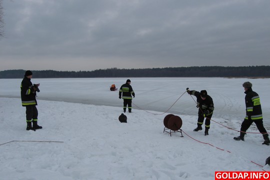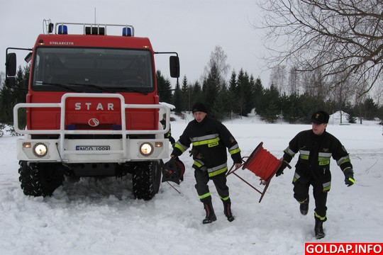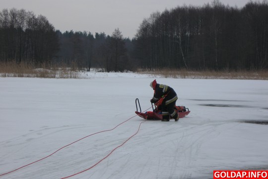 Powiat nasz ma sporo zbiorników i cieków wodnych, a tegoroczna aura sprzyja spędzaniu czasu na wolnym powietrzu, między innymi przez dzieci i młodzież szkolną oraz wędkarzy. Zdarza się, że niektórzy lekceważą podstawowe zasady bezpieczeństwa związane z przebywaniem na lodzie. Dlatego strażacy całą zimę są gotowi do podejmowania działań ratowniczych na zamarzniętych akwenach. 12, 13 i 14 stycznia zmiany służbowe JRG PSP i strażacy z JW4808 ćwiczyli na Jeziorze Gołdapskim procedury i sposoby prowadzenia działań ratowniczych w przypadku załamania się tafli lodu. Pozorantem, pod którym zarwał się lód, był jeden z ratowników PSP, odpowiednio zabezpieczony i ubrany w tzw. ubranie niezatapialne. Pozostali ratownicy ćwiczyli różne sposoby dotarcia do poszkodowanego oraz podjęcia go z wody. W trakcie ćwiczeń wykorzystywano deskę lodową, która specjalnie została skonstruowana do tego typu akcji oraz sprzęt przygodny, np. drabinę, linkę. Ratownicy byli odpowiednio ubrani i zabezpieczeni oraz asekurowani z brzegu przez swoich kolegów. Podczas ćwiczeń przypomniano również o podejmowaniu kwalifikowanej pomocy medycznej poprzez zastosowanie właściwych dla tego typu zdarzeń procedur medycznych.