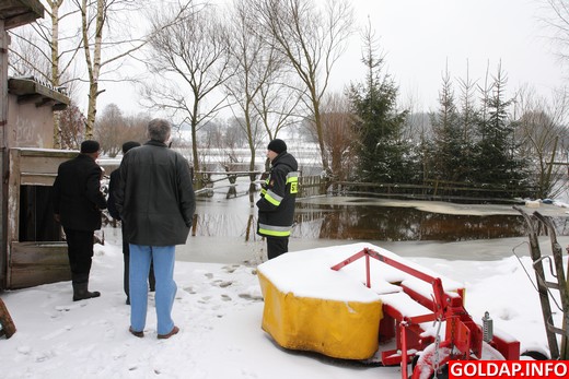 Woda z rzeki Gołdapy zalewa budynki gospodarcze, topią się zwierzęta - z taką informacją zadzwonił w piątek do Starostwa Powiatowego w Gołdapi Jan Milewski, sołtys sołectwa Jany. Sprawą natychmiast zajęło się Powiatowe Centrum Zarządzania Kryzysowego.