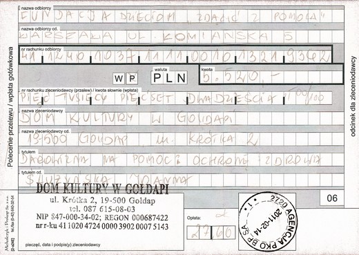 Do akcji włączyli się też gołdapianie, którzy przekazali na planowaną podczas koncertu licytację wiele cennych rzeczy. To m.in. dzięki nim oraz publiczności, która je wylicytowała podczas koncertu, potrzebna aktualnie rodzicom Joasi kwota zmniejszy się z 12 tysięcy do 6,5 tysiąca.
