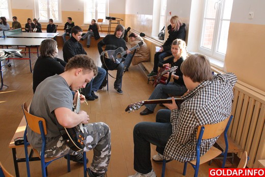 19 osób zgłosiło chęć uczestniczenia w warsztatach gitarowych, jakie organizowane będą w Zespole Szkół Zawodowych w Gołdapi. Dziś odbyło się pierwsze zebranie chętnych. Choć miało charakter typowo organizacyjny, to część uczestników przyszła już z gitarami i chwilę poćwiczyła.