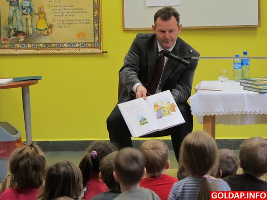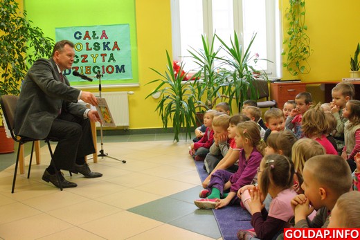 Na jej zaproszenie w najbliższych miesiącach znane, gołdapskie osobistości będą czytały dzieciom. Tegoroczną edycję akcji rozpoczął w piątek starosta Andrzej Ciołek, który przeczytał maluchom z oddziału przedszkolnego w SP3 bajkę pt. „Jak istotka malutka wygoniła hohonia z ogródka czyli baran w ogrodzie". Po przeczytaniu dzieci jeszcze porozmawiały ze starostą. Pytały m.in. skąd pochodzi i czym się zajmuje. Co ciekawe, były bardzo otwarte i rozmowne.
