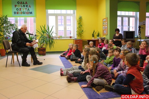 „Trzy świnki i wilk" to tytuł bajki, jaką dziś w ramach akcji „Cała Polska czyta dzieciom" przeczytał w Bibliotece Publicznej komendant powiatowy PSP w Gołdapi Krzysztof Giedrojć. Jego słuchaczami były dzieci z grupy pięciolatków A i pięciolatków B z Przedszkola Samorządowego.