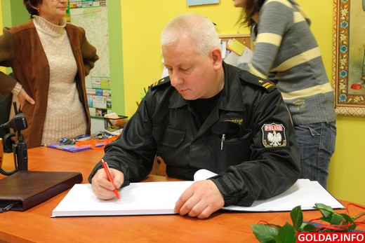Po przeczytaniu bajki dzieci rozmawiały z komendantem przez kilka minut, a następnie... większość z nich ustawiła się w kolejce po jego autograf. Krzysztof Giedrojć wykazał się opanowaniem i ze spokojem wypisał kilkanaście karteczek z dedykacjami.