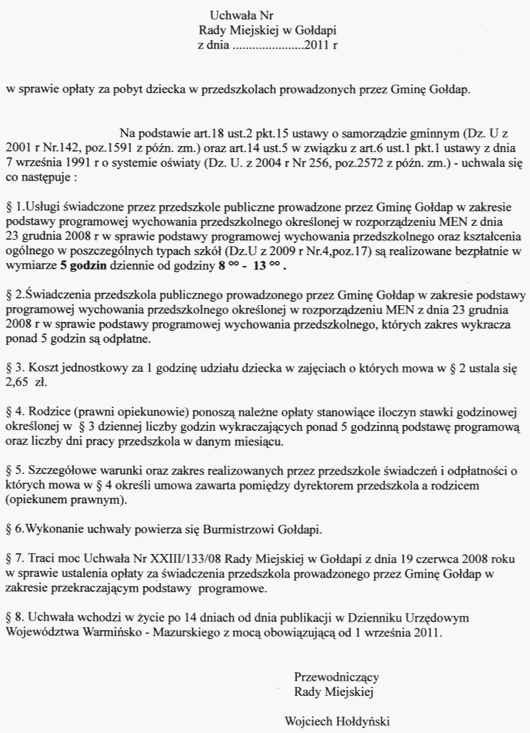 Oto propozycja uchwały w tej sprawie, którą przygotowała Irena Wojnikiewicz, kierownik wydziału oświaty w UM.