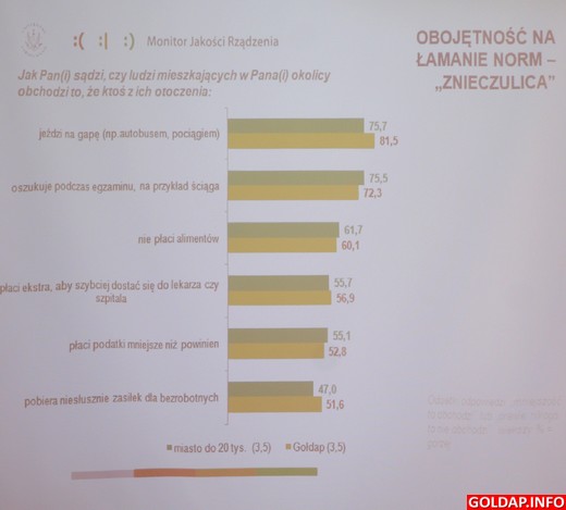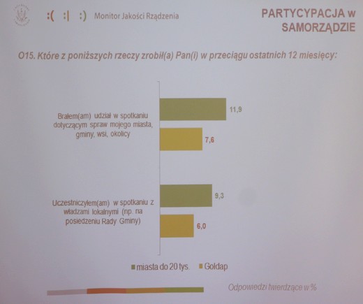 Jesienią ub. roku Gołdap odwiedzili ankieterzy, by przeprowadzić badanie dotyczące jakości rządzenia w gminie oraz barier w partycypacji obywatelskiej. Badaniem objęto tysiąc osób. Ich wyniki mogą być zaskakujące, na co uwagę zwrócił m.in. burmistrz Gołdapi Marek Miros. Z odpowiedzi ankietowanych wynika bowiem np. to, że w Gołdapi jest problem żebrakami oraz z jeżdżącymi środkami komunikacji publicznej na gapę...