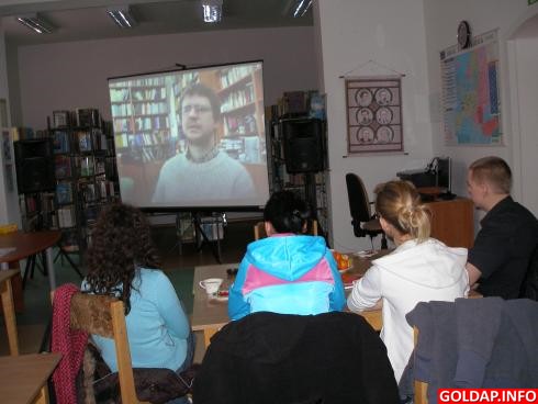 Spotkanie z młodzieżą w Bibliotece Publicznej w Gołdapi (omówienie ścieżki literackiej).