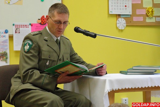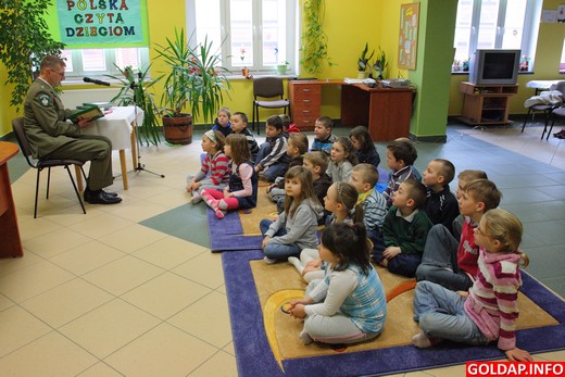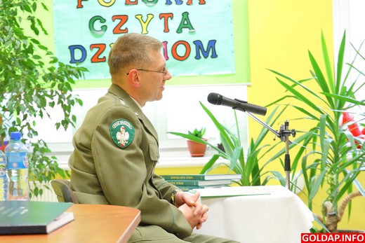 W Bibliotece Publicznej w Gołdapi odbyło się dziś kolejne spotkanie w ramach akcji „Cała Polska czyta dzieciom". Tym razem bajkę pt. „Strachliwy duch" czytał zastępca komendanta Placówki Straży Granicznej w Gołdapi Tomasz Makowski, a jego słuchaczami były dzieci z klasy 0c ze Szkoły Podstawowej nr 1 w Gołdapi.