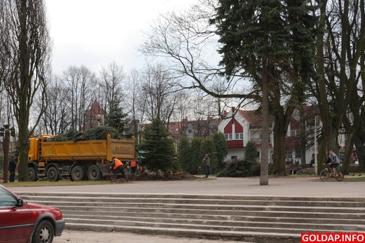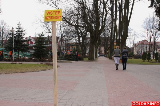 Firma PGK Sp. z o. o., która wygrała przetarg na modernizację centrum miasta, rozpoczęła prace w terenie. Dziś ścinane były drzewa i krzewy przeznaczone do usunięcia. Dla zabezpieczenia terenu dokoła parku postawione zostały znaki zakazu wejścia na teren budowy. Niestety, większość mieszkańców ma je za nic.
