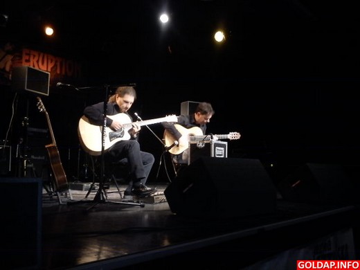 Za nami drugi dzień Erupcji 2011. W części warsztatowej z jazzu, popularu i classicu wzięło udział prawie 20 osób. Dziś prowadzili je członkowie zespołu Los Desperados: Marcin Czarnecki i Piotr Dębowski. Panowie pokazali uczestnikom, jak ze zwykłej, znanej wszystkim piosenki można zrobić coś pięknego poprzez dodanie bądź zastąpienie pojedynczych akordów. Warsztaty zakończyli miłym akcentem o zmiennej i zaskakującej pogodzie w naszym regionie świata.