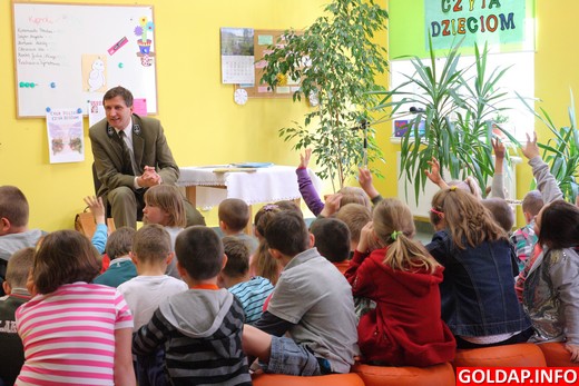 W Bibliotece Publicznej w Gołdapi odbyło się dziś kolejne spotkanie w ramach akcji „Cała Polska czyta dzieciom". Opowieść Jana Brzechwy pt. „Za króla Jelonka" czytał Andrzej Wyłucki, nadleśniczy Nadleśnictwa Gołdap. Jego słuchaczami byli uczniowie klas pierwszych ze Szkoły Podstawowej nr 1.