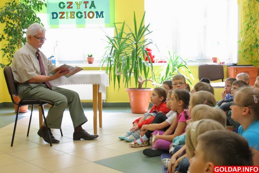 Po raz ostatni w tym roku szkolnym odbyło się dziś w gołdapskiej Bibliotece Publicznej czytanie na głos w ramach akcji „Cała Polska czyta dzieciom". Najpierw o godzinie 9.00 bajkę „Przygody rycerza Szaławiły" przeczytał komendant powiatowy policji Bogusław Turek. Jego słuchaczami były dzieci z klas zerowych i drugich z SP2. W samo południe bajkę „Pchłą Szachrajka" dzieciom z klas 1 z SP3 czytał zaś Jacek Morzy, zastępca burmistrza Gołdapi.