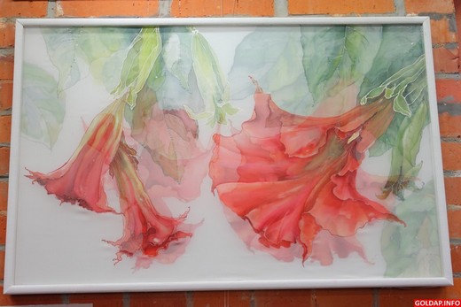 Obrazy artyści wykonywali różnymi technikami, na różnych materiałach. Dziś zaprezentowali kilkanaście swoich prac. Szczególnie ciekawie prezentuje się obraz Audrone Voreviciene pt. „Anielskie trąbki". Wykonany jest on na dwóch warstwach jedwabiu, nałożonych na siebie. Daje to efekt jego przestrzenności.
