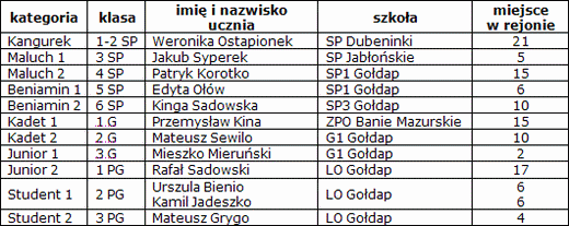 najlepsi uczestnicy konkursu ze szkół na terenie powiatu gołdapskiego