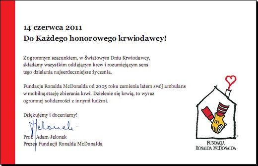 Dzięki Waszej krwi żyje tez moja córka Liliana i za to będę Wam wdzięczny do końca życia. Ale przede wszystkim z okazji Waszego święta, życzę Wam zdrowia gdyż tak naprawdę to ono podobnie jak krew jest w życiu najcenniejsze.
