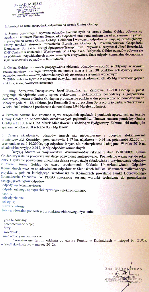 Przedstawiamy Państwu informację Wiesława Swatka, kierownika wydziału infrastruktury i inwestycji komunalnych w Urzędzie Miejskim, dotyczącą gospodarki odpadami na terenie gminy Gołdap.