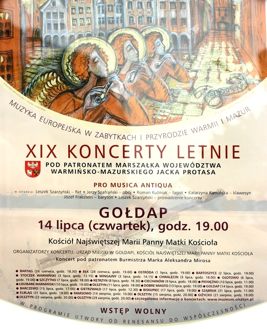 14 lipca w kościele Najświętszej Maryi Panny Matki Kościoła w Gołdapi odbędzie się koncert zespołu kameralnego Pro Musica Antiqua. Powstał on w 1992 roku. Jego założycielem a zarazem kierownikiem artystycznym i menadżerem jest Leszek Szarzyński. O prócz niego zespół tworzą i w Gołdapi wystąpią: Jerzy Szafrański, Roman Kuźniak i Katarzyna Kamińska. Początek koncertu o godzinie 19.00.