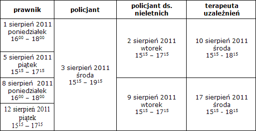 Ośrodek Pomocy Społecznej w Gołdapi przypomina, że w tutejszym ośrodku działa Biuro Porad Prawnych. Swoją pomocą służą prawnik, policjanci i terapeuta uzależnień. Oto harmonogram ich pracy w sierpniu br.