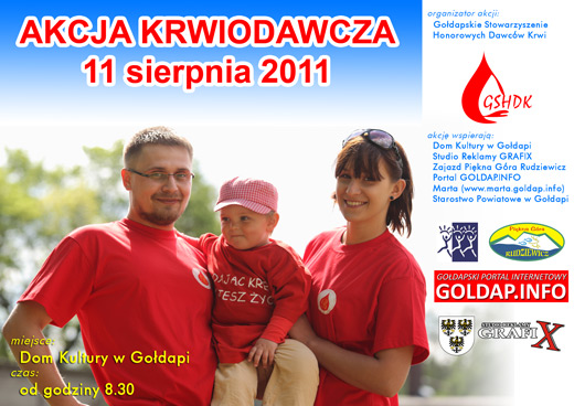 Tym razem w drugi czwartek miesiąca, a nie trzeci, odbędzie się comiesięczna akcja honorowego oddawania krwi, organizowana przez Gołdapskie Stowarzyszenie Honorowych Dawców Krwi. Wszystkich chętnych zapraszamy jutro od godziny 8.30 do sali widowiskowej Domu Kultury.