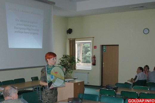Funkcjonariusze Placówki Straży Granicznej w Gołdapi rozpoczęli dziś cykl spotkań z kuracjuszami przebywającymi w gołdapskim ośrodku uzdrowiskowym. Wykład rozpoczęto od zaznajomienia nowo przybyłych z położeniem geograficznym powiatu gołdapskiego. Zwrócono szczególną uwagę na biegnącą w pobliżu granicę państwową, której nie powinno się przekraczać w miejscu do tego niewyznaczonym i bez odpowiednich dokumentów.
