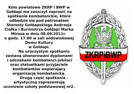 Z okazji „Dnia Weterana" 8 września o godzinie 17.00 w sali widowiskowej Domu Kultury odbędzie się uroczyste spotkanie kombatanckie. Podczas niego dyplomami i odznakami uhonorowani zostaną kombatanci - jubilaci oraz statuetkami osoby wspierające organizację kombatancką. Spotkanie zakończy część artystyczna przygotowana przez uczniów ze Szkoły Podstawowej nr 2.