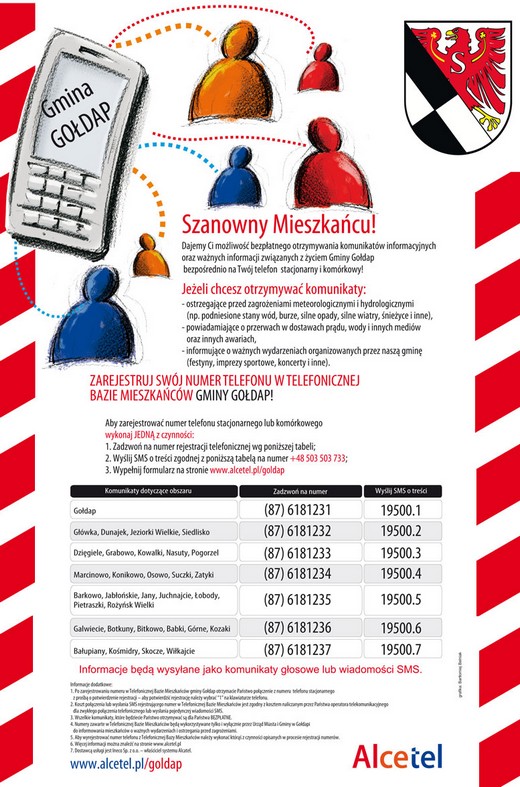Otrzymywane informacje będą bezpłatne. Zarejestrowane numery będą wykorzystywane tylko przez Urząd Miejski w Gołdapi.
