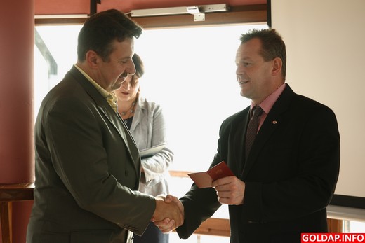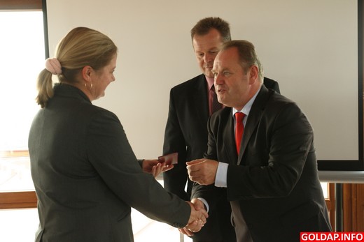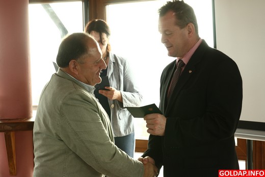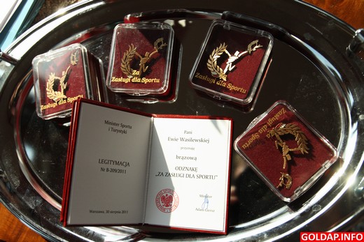 W imieniu ministra sportu i turystyki senator Marek Konopka, poseł Janusz Cichoń oraz starosta gołdapski odznaczyli dziś 4 osoby Brązowymi Odznakami „Za zasługi dla Sportu" oraz 5 osób Odznakami Honorowymi „Za zasługi dla Turystyki". Uroczystość odbyła się dziś w wieży ciśnień podczas konferencji pn. „Turystyka i sport w powiecie gołdapskim", zorganizowanej przez Starostwo Powiatowe w Gołdapi.