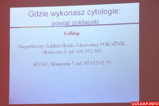 W spotkaniu wzięło udział kilkadziesiąt osób. To kolejne w tym roku spotkanie edukacyjne w naszym mieście, dotyczące zapobiegania i leczenia raka szyjki macicy oraz raka piersi. Podobne odbyło się w marcu, wówczas jego organizatorami byli Ośrodek Pomocy Społecznej i Gołdapskie Stowarzyszenie Honorowych Dawców Krwi.