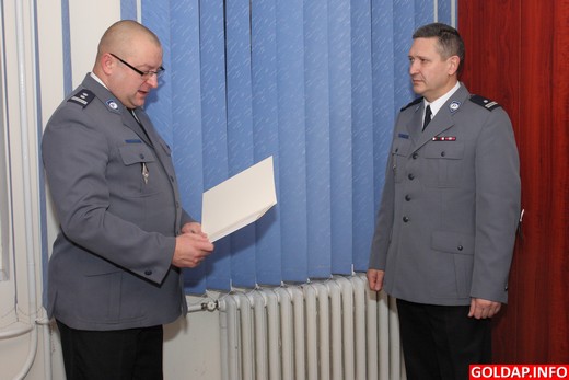 Komendant powiatowy policji w Gołdapi mł. insp. Andrzej Żyliński wręczył dziś w imieniu komendanta wojewódzkiego akt powołania na stanowisko I zastępcy komendanta podins. Ryszardowi Stemplewskiemu.