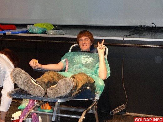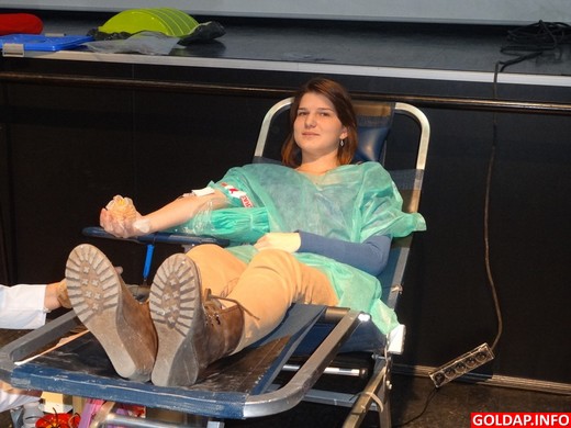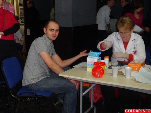 Dzisiaj padł nowy rekord w ilości oddanej krwi podczas jednej akcji. Zgłosiło się 68 osób, krew oddało 59: 58 osób po 450ml, a jedna 100ml. Jakby nie liczyć - 26,2 litra! W osiągnięciu tego super wyniku miała udział współorganizatorka dzisiejszej akcji Grażyna Górko, nauczycielka z Liceum Ogólnokształcącego w Gołdapi, oraz młodzież z jej szkoły, która licznie się zgłosiła. Podczas akcji zbierane były słodycze, które zostaną przekazane dzieciom z Domu dla Bezdomnych i Najuboższych Monar-Markot w Garbasie.