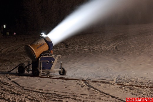We wtorek wieczór, gdy na zewnątrz zapanowała ujemna temperatura, rozpoczęło się sztuczne zaśnieżanie dłuższego stoku na Pięknej Górze. W środę w dzień armatki nie pracowały (było za ciepło), ponownie ruszyły wieczorem i sypią białym puchem do tej pory.