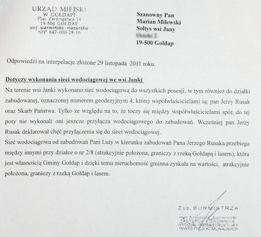 - Wieś Osieki ma podłączoną wodę. Są tam praktycznie 3 zabudowania, korzystają z niej wszyscy. Ale po co było prowadzić wodę poza wieś do lasu? Mieszkańcy teraz pytają mnie, czy tam może będzie zrobiony wodopój dla dzikiej zwierzyny leśnej? - zapytał podczas listopadowej sesji Rady Miejskiej Marian Milewski, sołtys Jan. - To jest 300 metrów niepotrzebnie położonego przewodu. Bądźmy szczerzy, 300 metrów takiego przewodu kosztuje.