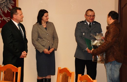 - Swoim odważnym zachowaniem wykazał się pan odpowiedzialnością społeczną, zapobiegając tym samym zagrożeniu, jakie mógł stworzyć nietrzeźwy kierowca - mówił starosta gołdapski Andrzej Ciołek kierując słowa podziękowania do Tomasza Bieleckiego, który 4 stycznia br. gościł w starostwie. Z rąk starosty, wicestarosty Ewy Bogdanowicz-Kordjak oraz komendanta powiatowego policji w Gołdapi Andrzeja Żylińskiego mężczyzna otrzymał list gratulacyjny i upominek.