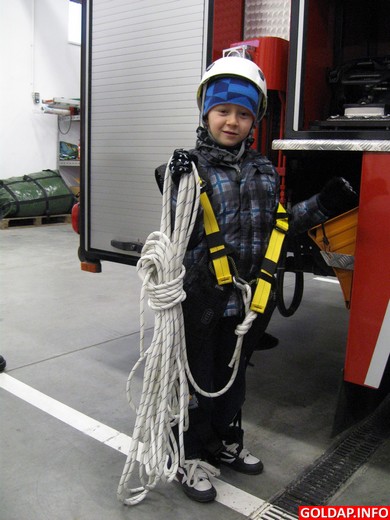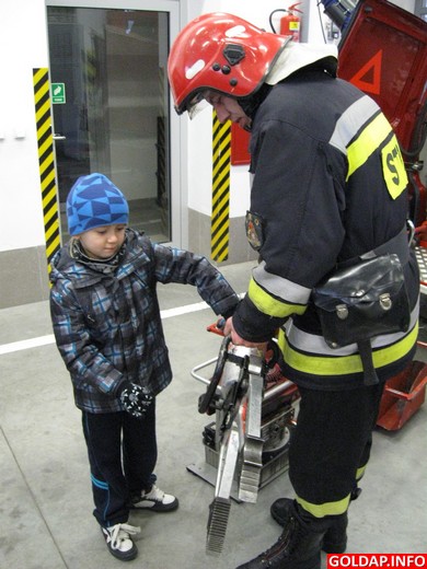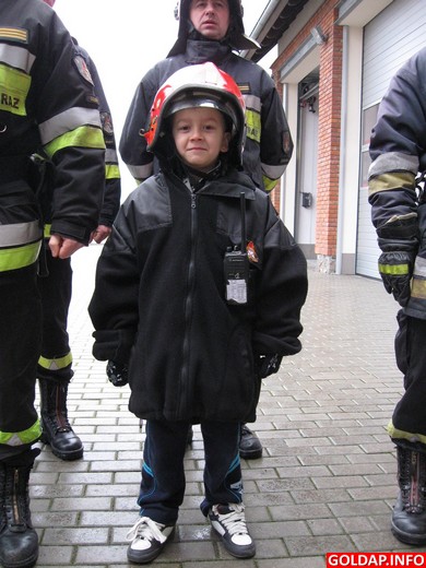 Młody strażak rozpoczął swoją służbę zgodnie z regulaminem - czyli od zmiany służby. Oskar uczestniczył w odczytaniu rozkazu dziennego, przyjęciu sprzętu i przyjęciu terenu JRG. Następnie został zapoznany z pomieszczeniami Komendy Powiatowej PSP w Gołdapi. Finałem pobytu były ćwiczenia zorganizowane specjalnie na to wydarzenie, w których młody strażak dzielnie uczestniczył. Oskar brał udział w swojej pierwszej służbie razem z tatą. Młody adept pożarnictwa obiecał, że w przyszłości zostanie strażakiem.