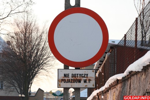 Każdego dnia do pracy w gołdapskiej jednostce wojskowej dojeżdża co najmniej kilkanaście, a czasem kilkadziesiąt samochodów. Jadąc ulicą Partyzantów, tuż przy Komendzie Powiatowej Policji każdy z kierowców mija znak B1 (zakazu ruchu w obu kierunkach) z umieszczoną tabliczką, że nie dotyczy pojazdów WP.