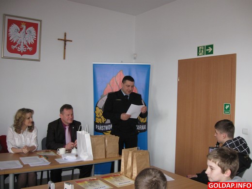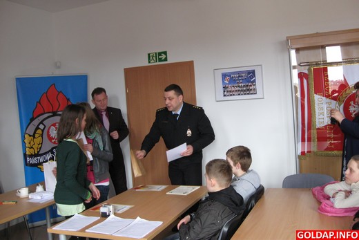 W Komendzie Powiatowej Państwowej Straży Pożarnej w Gołdapi odbyły się dziś powiatowe eliminacje ogólnopolskiego turnieju wiedzy pożarniczej „Młodzież zapobiega pożarom". Nad ich prawidłowym przebiegiem czuwało jury w składzie: st. kpt. Grzegorz Jabłoński, dh Ewelina Panek i sekc. Seweryn Gryniewicz. Po dokonaniu oceny prac pisemnych i rozgrywek finałowych wyłonili oni trójki najlepszych uczestników w trzech kategoriach wiekowych.